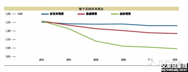 GWEO稳健情景的设想是风电起到更大的作用,到2020年发电量超过1750TWh,2030年达到接近3900TWh。这意味着到2020年风力发电占全球电力需求的7.2%和7.8%,2030年占12.9%和14.5%,风电地位相当重要,但仍旧不能达到气候与环境目标的要求。